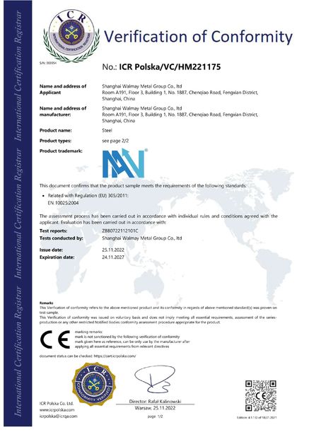 Shanghai Walmay Metal Group garantisce prodotti e servizi di altissima qualità dall'inizio alla fine, non solo in termini di produzione, ma anche di materiale, peso, dimensioni e superficie.